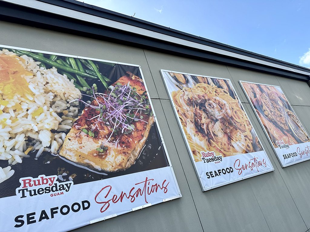 こちらはアメリカのフランチャイズレストラン、ルビーチューズデー(Ruby Tuesday)の屋外広告。ステーキなどの肉料理に加えシーフードも人気のメニューですが、この時期はシーフードメニューの種類が大幅に増加。アペタイザーからメインディッシュ、パスタなどの充実ぶり。