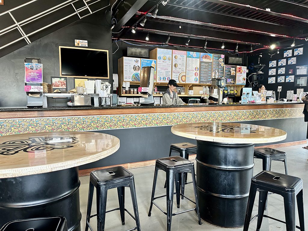 ハファロハは何のお店かというと、アパレルファッションとかき氷のお店。店に入るとまず目の前にはかき氷をオーダーするカウンターがあります。かき氷の他にもスムージー、ソフトクリーム、アサイボウル、そしてハンバーガーやポキボウルなどのフードメニューも充実。