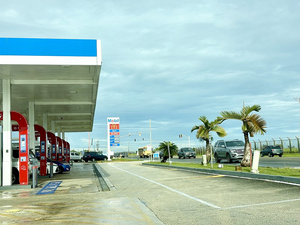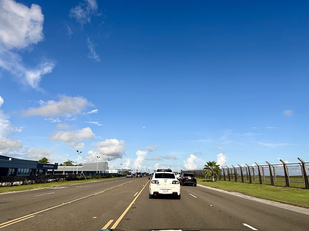 上の写真は8号線をハガニアに向かって走っているところ。右側に見える柵の向こうは空港の敷地内。8号線は空港に沿って走っている道なのです。