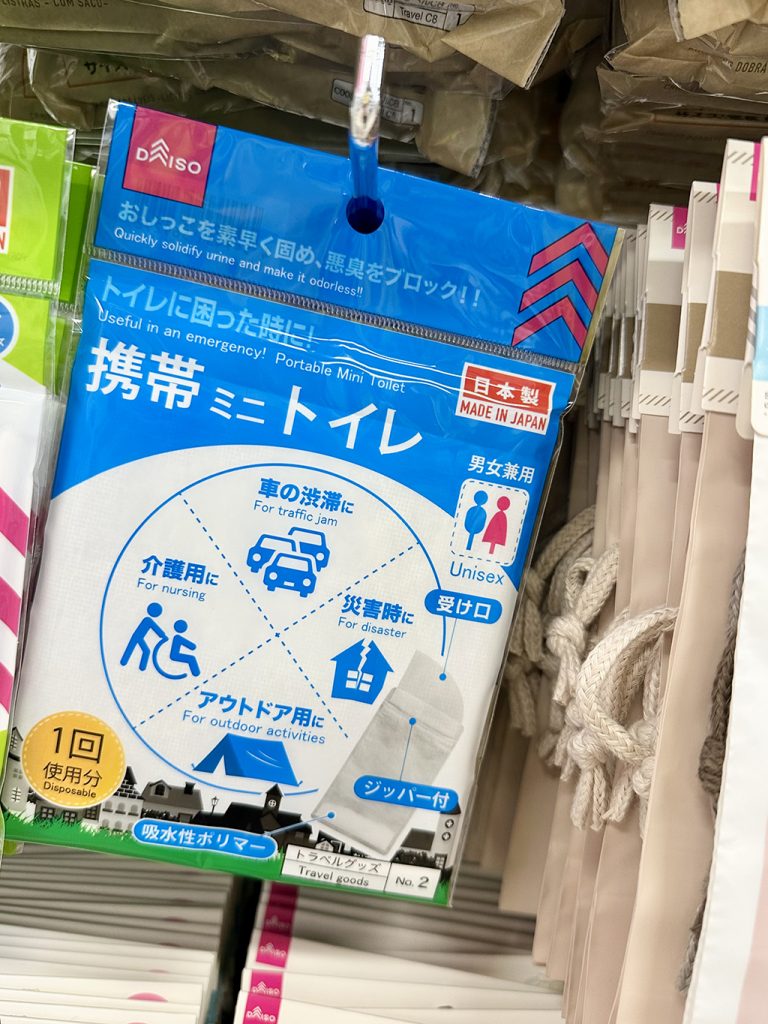 這是攜帶式迷你馬桶,在交通堵塞時、戶外活動或災難等無法立刻找到廁所的情況下,這個產品將可以解決你的問題,吸水性聚合物能將尿液瞬間凝固成膠狀,並牢牢封住。對於有小孩的家庭來說,也是一個很實用的物品。